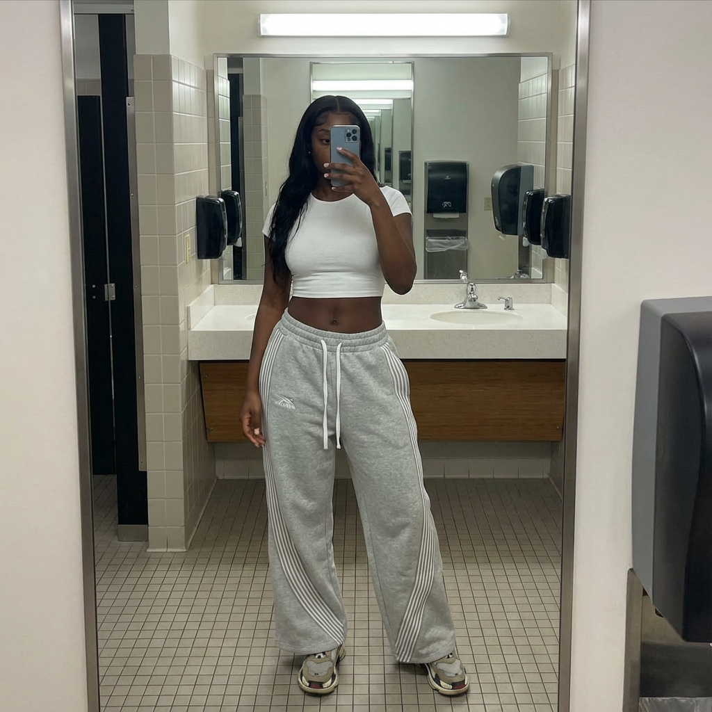 Our sweatpants are made from a soft, breathable blend of cotton and polyester, designed for all-day comfort and durability. The material is lightweight yet warm, perfect for lounging or workouts.